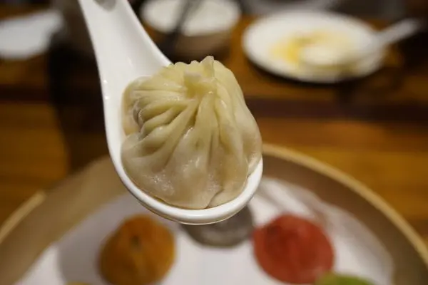 一口咬下後,湯汁沒有到會滴得滿桌都是,但也是淹滿了滿隻湯匙。