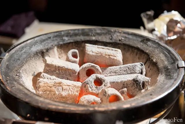 每桌前方都有炭火,但是擺放的位置設計的很好,完全不會覺得炎熱或是有惱人的油煙
