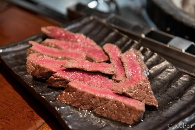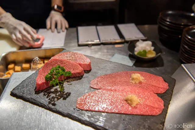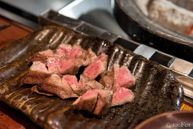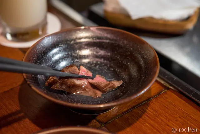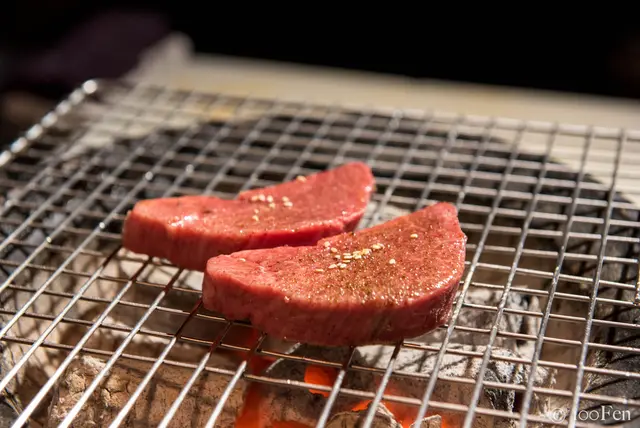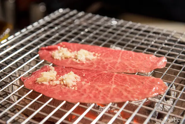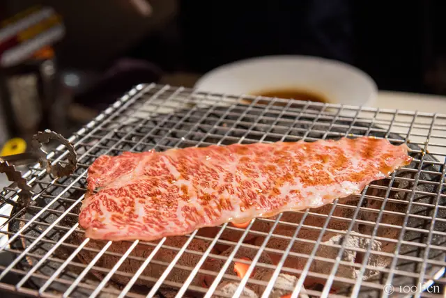 也因為是厚切,所以花了不少時間才烤好,烤完之後還需靜置一會。看著眼前的燒肉秀,即使需要等待,過程也不無聊了