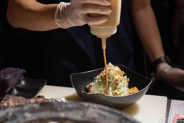 這個是別人點的沙拉,是由我們這桌的店員製作。店裡每位店員真的都非常忙碌,不得不佩服他們,還有精準又深厚的烤功