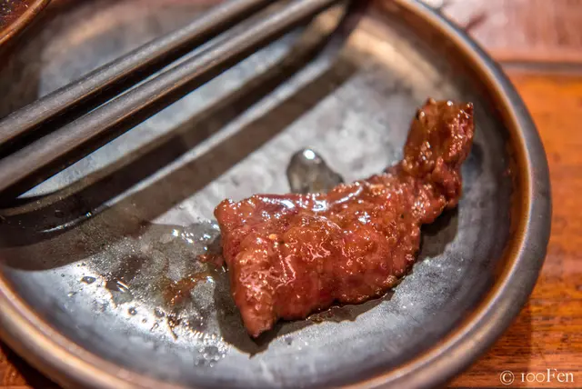 雖然在前面吃了那麼多厲害的部位,使得橫膈膜相形失色,但是也因為前面的和牛口感都偏柔嫩、入口會化開,因此中間來個橫膈膜製造一些彈牙的口感,反倒能讓味蕾不要疲乏