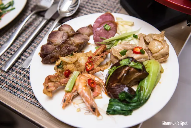 簡單來講海鮮新鮮就是大大加分,啤酒蝦當然就很不錯且大小適中不怕拿太多吃不完!鹽酥鮮蟹本來我沒有抱太大期望,但入口後我覺得真的蠻酥口且並沒有炸得很乾耶~連平常很少吃蟹的S都跟我講說很不錯耶!叉燒和特製臘腸香氣夠且口味口感很適中,可以拿一兩個淺嚐就好因為有太多東西還沒吃,臘肉蒸雞肉的雞肉非常的嫩口、東坡肉我好驚艷,看到豬皮我怕油又怕膩口看到瘦肉又怕乾柴,殊不知一入口融合的就是這麼剛好,來這邊不吃一塊真的對不起自己耶!
