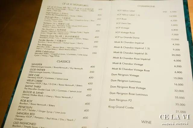 因為目前CÉ LA VI sky bar的酒單沒有在官網上,所以moni有事先電話詢問低消,