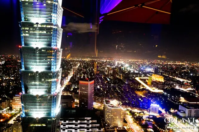 在微風南山48樓上,需到微風南山百貨的另一棟高層樓專用電梯搭乘,CÉ LA VI 依照不同時段提供sky bar跟餐廳、下午茶的服務,提供亞洲創新菜色,如果想一覽全台最美的夜景,來這準沒錯,在酒吧時段來時,可以以最優惠的低消入場,可說是相當划算又夢幻的享受。