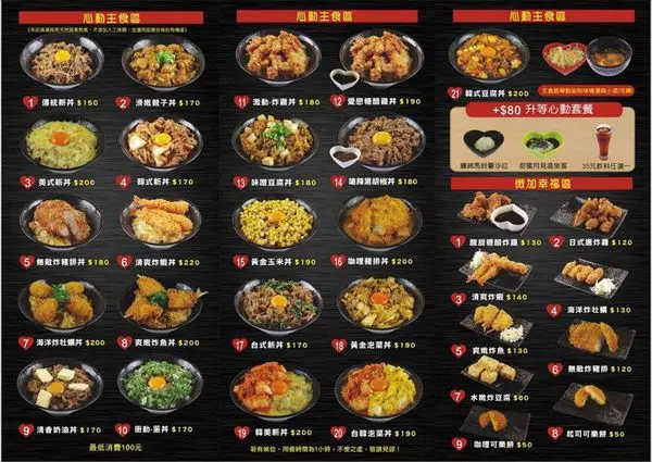 不管你想得到,還是想不到的,店裡21種之多的聯合國創意丼飯,會讓你多到想很久才能決定今天要吃那一道?而也因為那麼多的選擇,好有機會可以每次都來嚐嚐不同口味的丼飯,老闆心機很重ㄟ!這樣在拉住我們的胃;好好好!也要好吃,不好吃有100種口味,任誰也不會想來是不?!