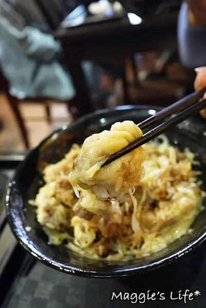 滑蛋在雞腿肉間流竄,讓原本細嫩的雞腿肉更加滑嫩又帶著滿滿蛋香,若是不敢吃生雞蛋的朋友點上這道親子丼也不賴喲!