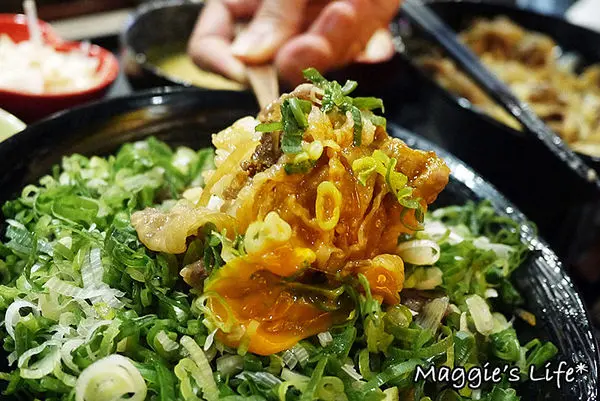 看著蛋黃哥被滿滿青蔥包圍的樣子,色澤好誘發人食慾,不過一開始我也在想那麼多青蔥拌飯吃會不會很生很嗆口?不過當我拌開來吃時發覺一點都不嗆,多汁的青蔥甜味是很溫和的,即便塞了滿嘴也不會感到嗆辣,我好喜歡這碗「蔥丼」!