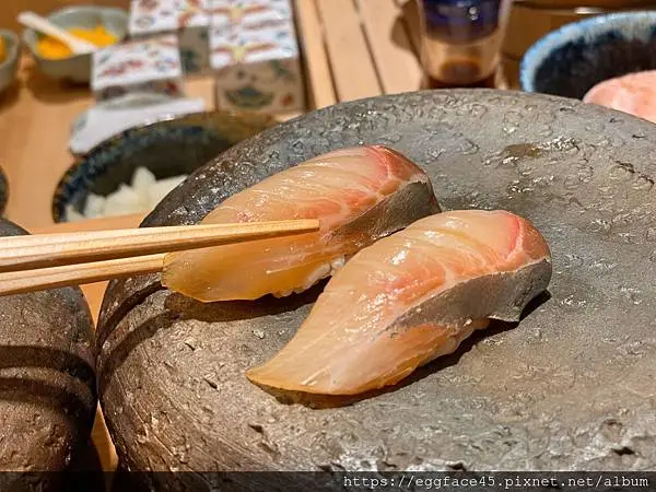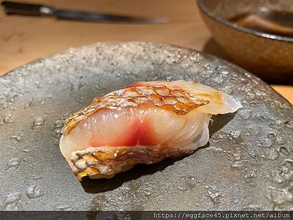美美的櫻花鯛魚壽司,魚肉Q彈鮮甜,搭配醋飯很有滋味。