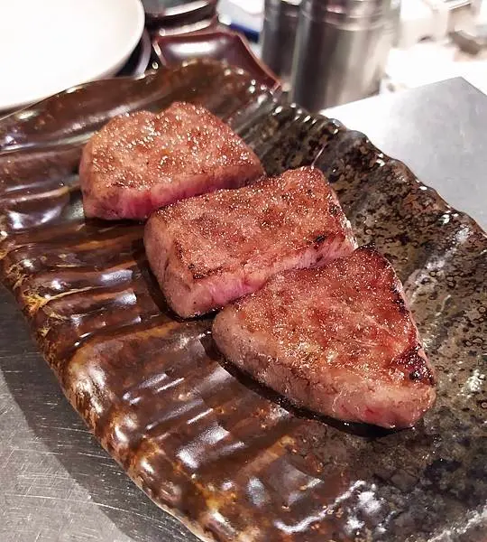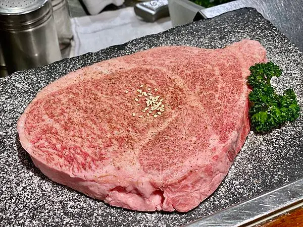 ▼烤好後,服務人員會幫忙將牛排分部位切塊,再呈現給我們!