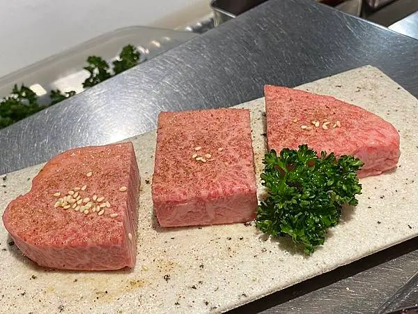 肋眼心適合搭配芝麻葉及昆布鹽食用,