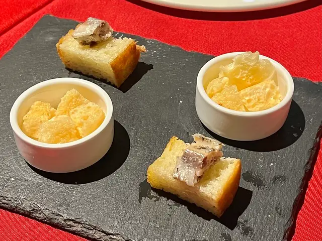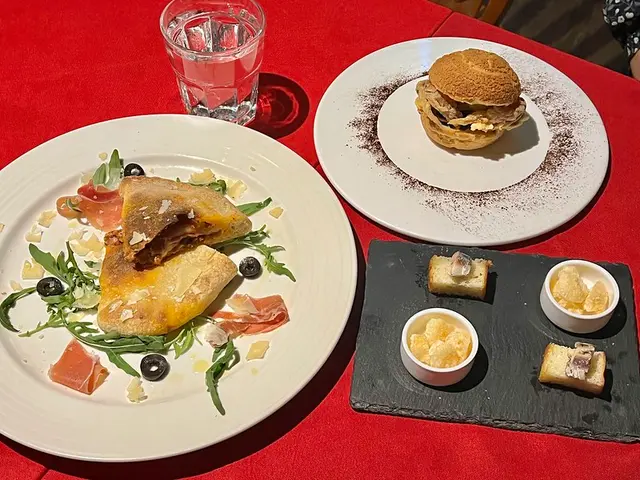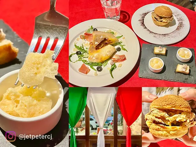 2. 很多特色義大利料理🇮🇹,只有這邊吃得到!店家招待開胃菜,烤帕馬森起司酥脆鹹香、白鳳鮪魚佛卡夏感受到魚肉的滋味!再來一顆蟹肉泡芙,一口咬下,爆出鮮奶蔬菜泥,引出蟹肉的鮮甜,充滿創意的料理~