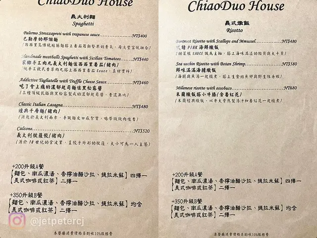 本來預計明年要去義大利,結果因為假期無法排好,暫時放下去義大利旅遊的計畫,省下機票錢,不用飛到義大利,來趟巧哚洋房就能盡情享受義大利的好滋味~