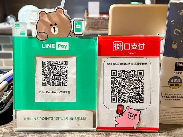 巧哚洋房提供超多支付方式,信用卡、LINEPAY、街口通通都可以,真的好方便~享受巧哚洋房料理,也不用擔心會大傷荷包喔~