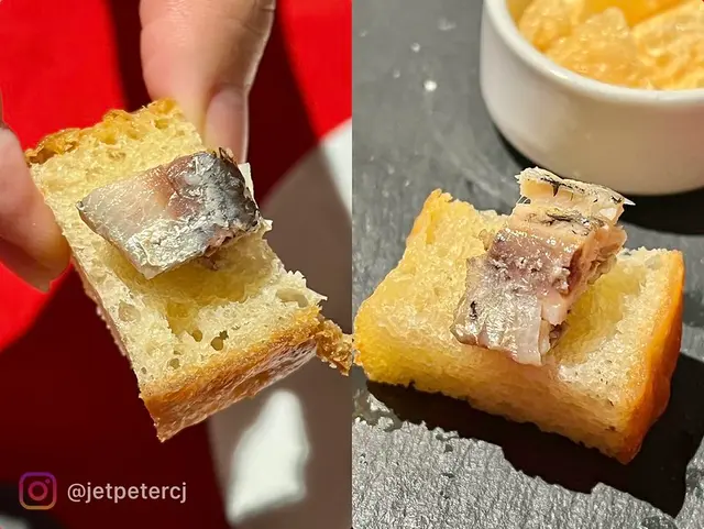 白鳳鮪魚吃起來肉質相當紮實,帶點魚肉的油脂跟濕潤口感,搭配酥脆的麵包,吃起來口感頗有層次~