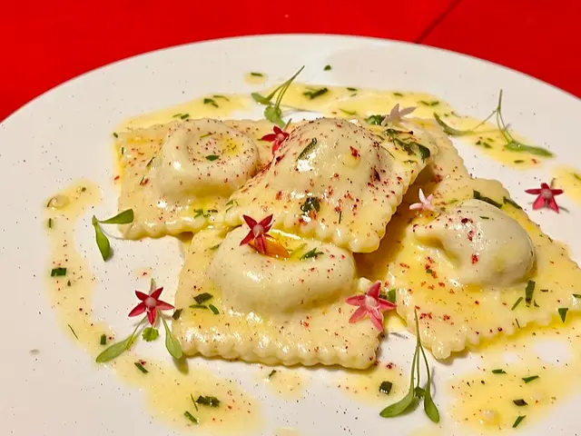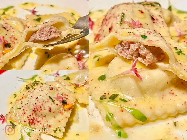 一咬下外皮相當有咬勁,紮實帶有厚度的口感,跟我想像的口感大不相同~沾上使用橄欖油、奶油、鼠尾草製成的醬料,香味瞬間湧現!