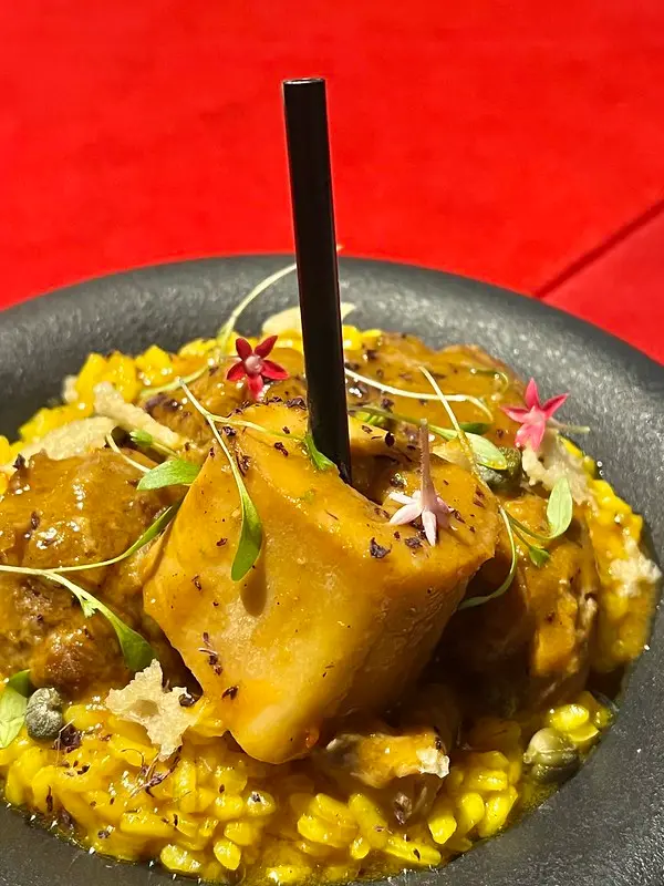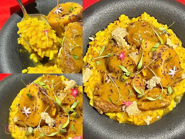 米蘭燉飯搭小牛膝真的超好吃,燉飯口感軟硬適中,不會太硬或太軟,米飯吸滿牛大骨湯汁和番紅花精華,充滿香氣每一口滋味都很足~