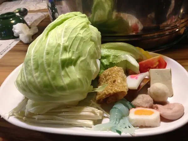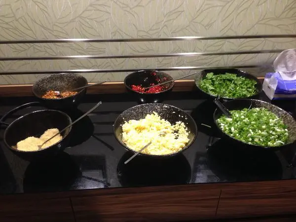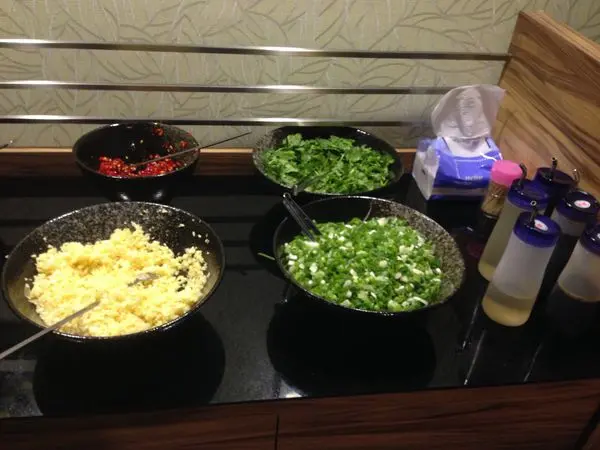 每個座位上都放在一碗...(挺油的就是)冷飲的部份有無糖綠茶跟奶茶,