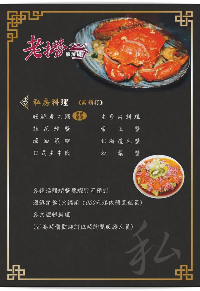 台北敦化北路又有新開高質感的麻辣鍋可以嚐鮮囉!老撈麻辣鍋,主打新派火鍋與私房料理,多款湯頭搭配嚴選肉品、海鮮盆,加上私人包廂深受喜愛!這次我們與好友一同來聚餐,大家熱鬧吃鍋小酌好歡樂!推薦必點老撈滑牛,加上特製大陸油碟沾醬,吃得好爽好滿足!加上主廚私房料理:蠔油蒸鮑魚、桂花炒蟹,還有超豪華海鮮拼盤,就算痛風也要吃!台北私人包廂聚會餐廳推薦,台北敦化北路美食推薦,台北單點麻辣鍋推薦,台北敦化北路美食,捷運南京復興火鍋推薦,