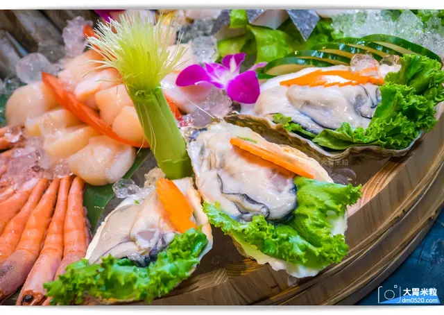 我們當日的海鮮盆有台灣無毒蝦/生食級鮮干貝/日本大鮮蠔/寶石鱸魚片,