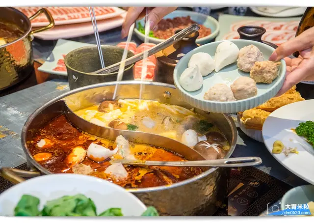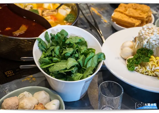 火辣辣的鍋物放入各種丸餃類與蔬菜,