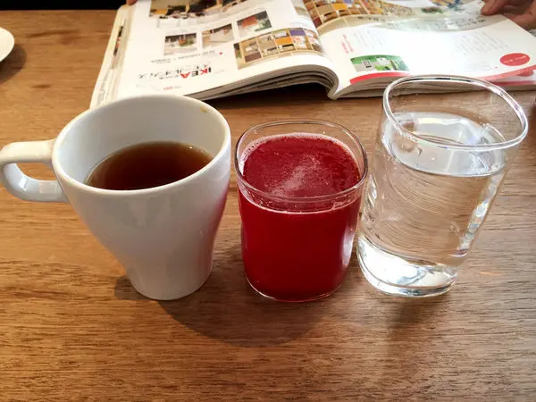 點套餐有附果汁,這次配的是蔓越莓汁,應該是現打的? 吃到很多果粒而且跟那種超商賣的味道完全不一樣,也不會甜(L)