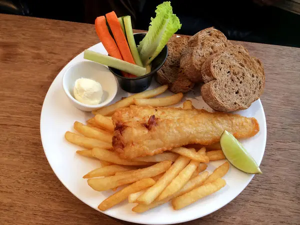 之前在 倫敦 的時候就發現倫敦超級多 FISH & CHIPS,可以等於他們的路邊攤小吃了唄,Cafe' a' la mode 的不知道是什麼魚,吃起來是油脂滿多的,但我只吃一口不敢作過多的評論,食主覺得不錯!!