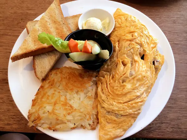 培根火腿起司歐姆雷特蛋捲 + 薯餅 NT240