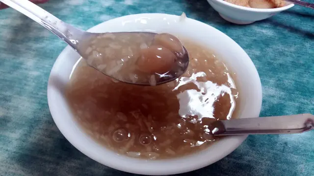 米糕粥是來自北港的甜粥,以長糯米加入桂圓進行熬煮,每一口都可以吃到糯米豐實的口感,以及桂圓香甜的滋味。一份35元。