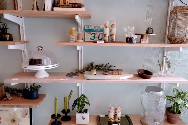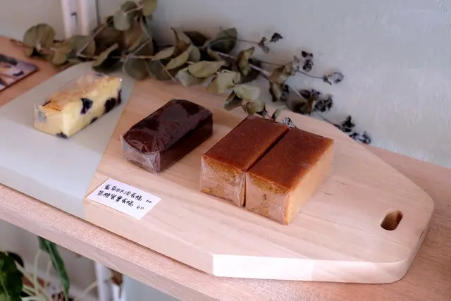 一進門就能看見木頭層列架上,擺著當日供應的小點心與常溫蛋糕,玲瑯滿目樣子也很可愛。