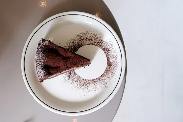 後來店家私訊我們表示,裡頭的顆粒是使用來自覆盆子的籽,店內烘焙師傅喜歡在巧克力蛋糕中加入一些莓果,以中和巧克力的甜膩。)