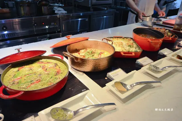 除了歐洲、美洲、拉丁美洲等精彩菜色外,另有各式亞洲風味料理,像是番茄黃金蟹燉鍋、泰式咖哩雞、湖南辣味豬五花、藤椒酸菜魚、上湯娃娃菜等,都是美味特色兼具.每一道都好下飯,可惜不能吃太多飯啊,吃飯了就裝不下其他美味料理了