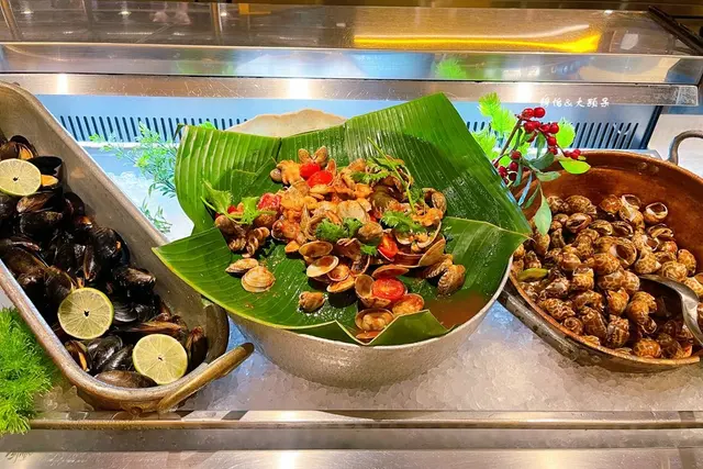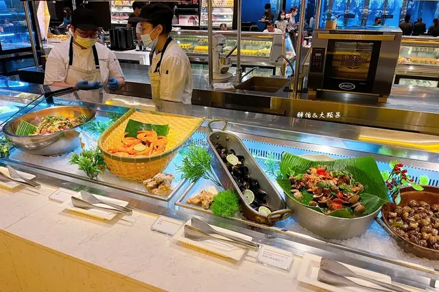 【探索廚房 LATEST RECIPE】靈活運用世界食材,完美呈現各國風味料理,劃分為炭烤區、中西熱食區、日式料理區、炸物及現煎區、沙拉及冷菜區、蒸煮區、甜點區、窯烤披薩區、飲品區等,像是頂級肋眼部位現點現煎的安格斯黑牛排、每日嚴選現撈漁獲新鮮現切生魚片、從美國重金引進Robata爐烤設備的炭烤紐西蘭羊排及炭烤翼板牛、精彩涼拌菜泰式涼拌蟹及五味小章魚、現點現煮熱騰騰的新加坡肉骨茶、人參鮑魚雞湯、猶如珠寶櫃般精緻陳列的甜點,飲品區除各式新鮮果汁、咖啡、茶及軟性飲料外,還有自動生啤機,按一下即享有細緻泡沫與順口清爽的生啤酒,假日午晚餐來用餐更特別提供帝王蟹味噌湯,來吃一趟絕對不枉此行!