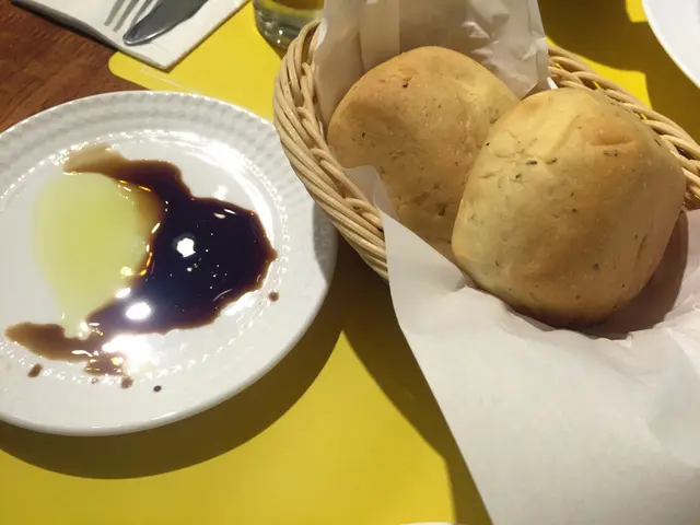 麵包是沾油醋醬的,蠻有嚼勁的麵包,味道還不錯。