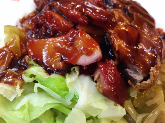 一看怎麼醬淋得這麼多啊?帶點甜味的醬味道是不錯,不過也未免太多了吧?!