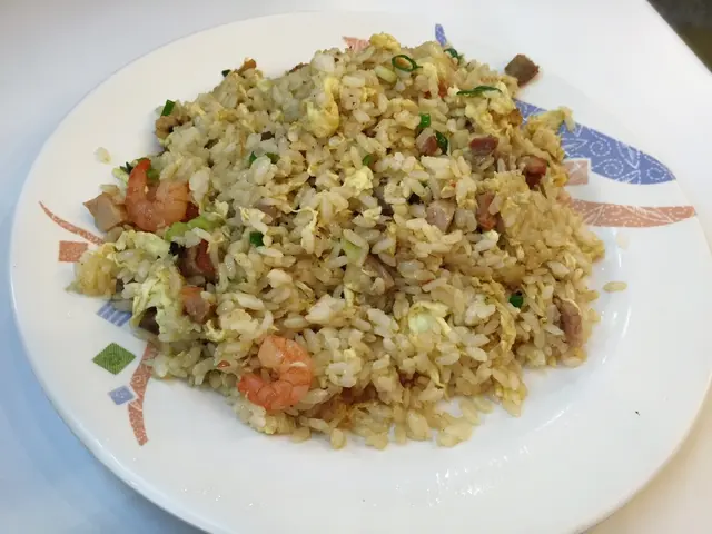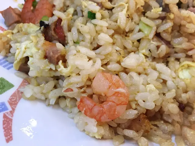 蝦仁炒飯90元,炒得粒粒分明,料也給得蠻多的,喜歡這種有加點醬油的炒飯特別的香。