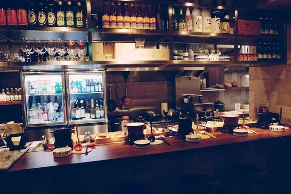 黑輪吧的大門用推的往左邊拉,一進去就可以看到工業風格的設計,吧臺前有幾張高腳椅,櫃台下面則有勾勾可以懸掛包包及隨身物品,提供外賣服務。跟我印象中的黑輪真的是反差很大。
