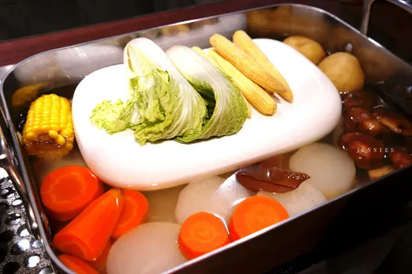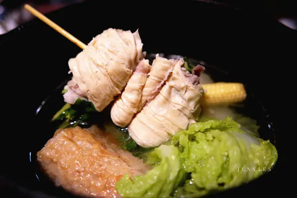 小豆芽豬肉豆皮捲及玉米筍還有娃娃菜...,他們家的湯頭也是清清淡淡,喝起來也滿舒服的,跟整家店的風格非常合搭。