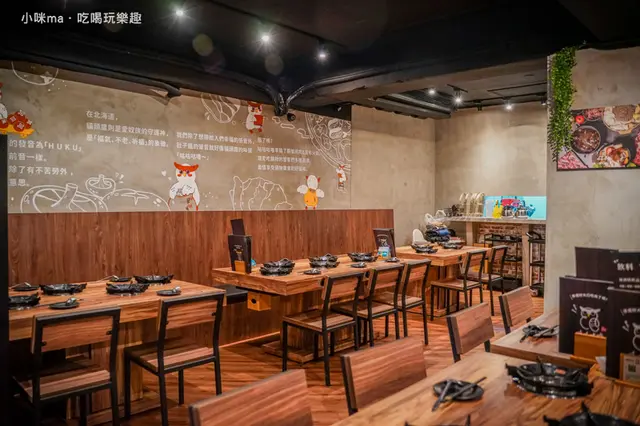 店內的空間走的是溫馨的木質暖色調,牆上妝點著貓頭鷹的Q版塗鴉增添活潑可愛的氛圍