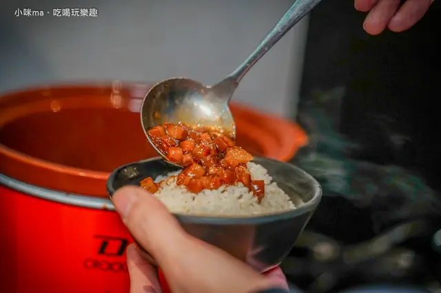 一舀上來油亮肥滋滋的滷肉也太誘人,淋在白飯上散發晶透光澤,完全不輸滷肉飯專門店