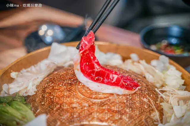 銅盤烤肉的肉片都已經先塗上特製醬料,我覺得鹹味條的剛剛好,牛肉烤到7~8分熟就可以品嘗,單吃就非常好吃