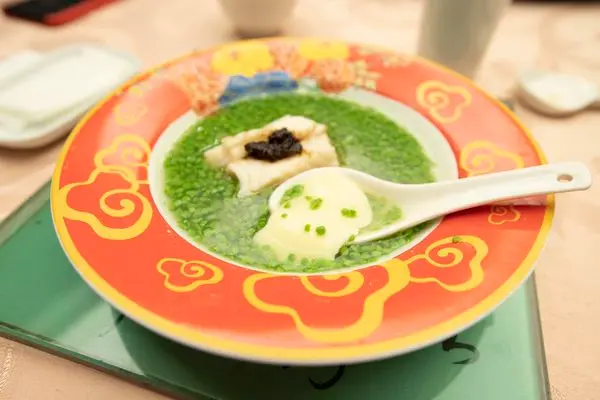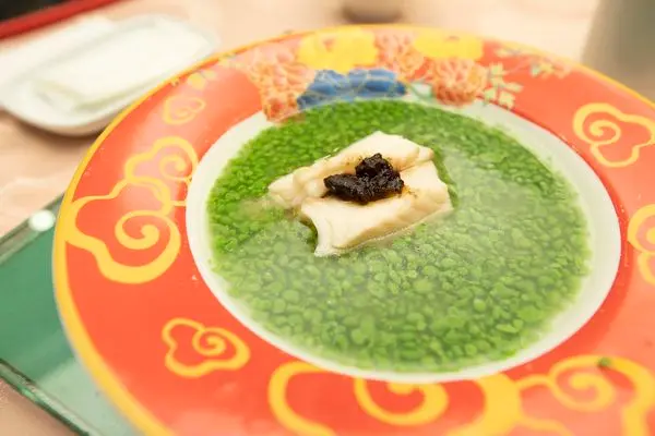 綠色顆粒則是用菜汁加蛋白拌粉,應當使用過油製成的作法,