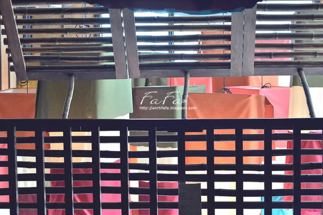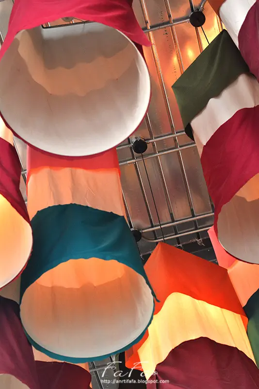 從天花板垂下的彩布燈籠,概念是來自東南亞僧侶的衣服顏色,
