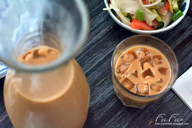 送上的泰式奶茶非橘紅色,但味道是很貼近純正泰奶的,也慶幸沒有像在泰國喝的手標茶那麼甜。