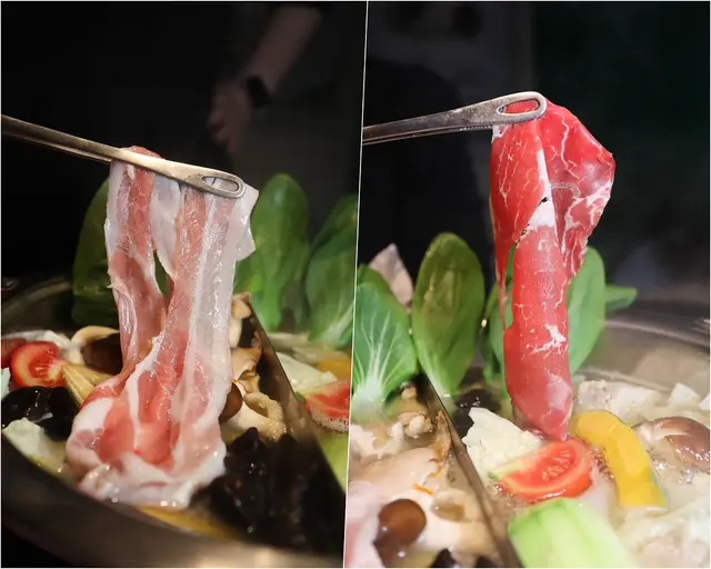 分別是酸白菜鍋與昆布鍋,淺琥珀色的湯底看起來相當的清透!不是那種濁濁的湯底