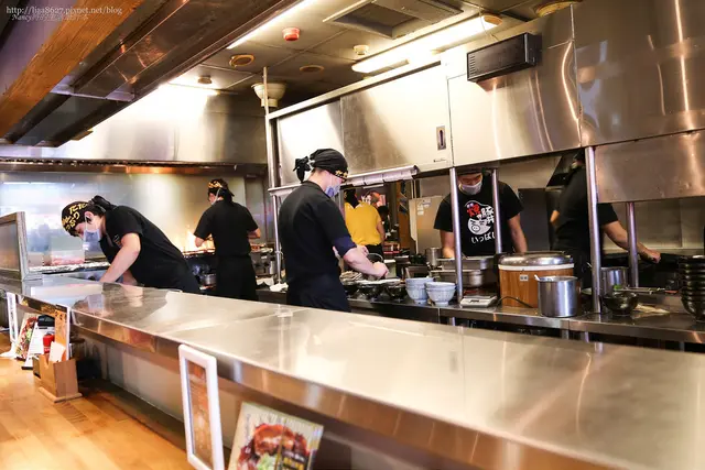 老芭幫我們剛好找到了轉角的座位區~這個角度剛剛好看到師傅們在烤肉與製作餐點的過程~