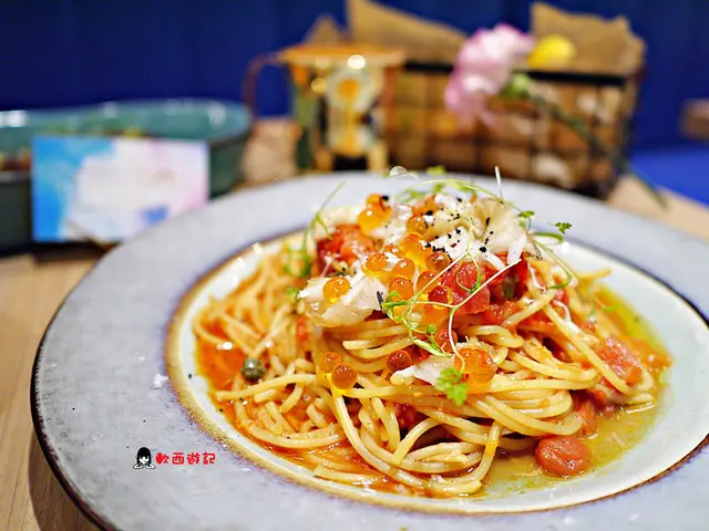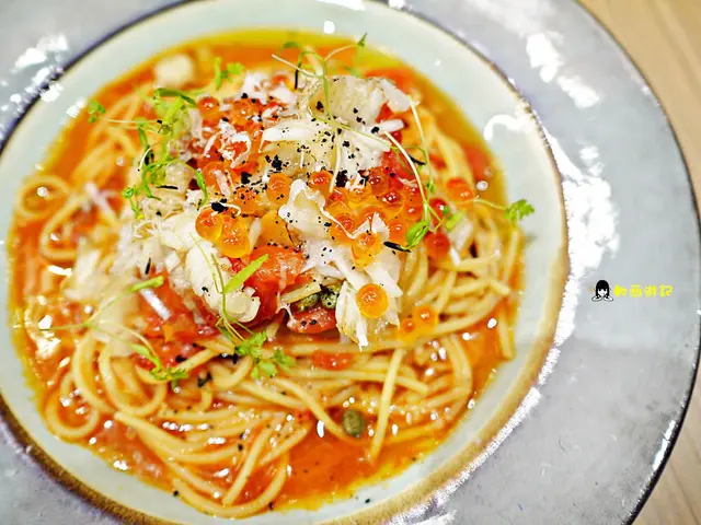 鮭魚卵炙燒比目魚鰭邊義大利麵(NT340)