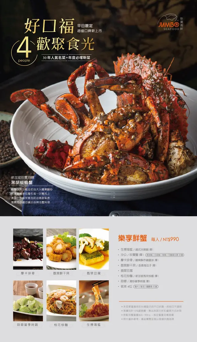 [市政府站]珍寶海鮮~平日樂享鮮蟹套餐990元 輕鬆享有新加坡美食辣椒螃蟹/胡椒螃蟹
