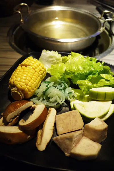 點好想吃的餐點後也到沙拉吧區去拿想吃的火鍋食材,裡面的食材看起都很乾淨新鮮。