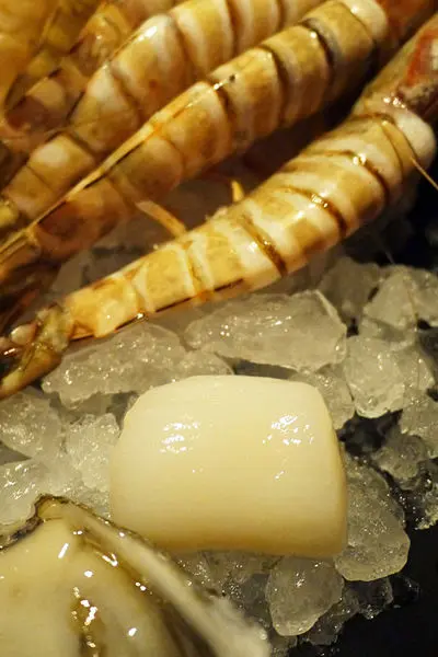 琥珀蝦很大一隻,六隻排列出來就很壯觀。