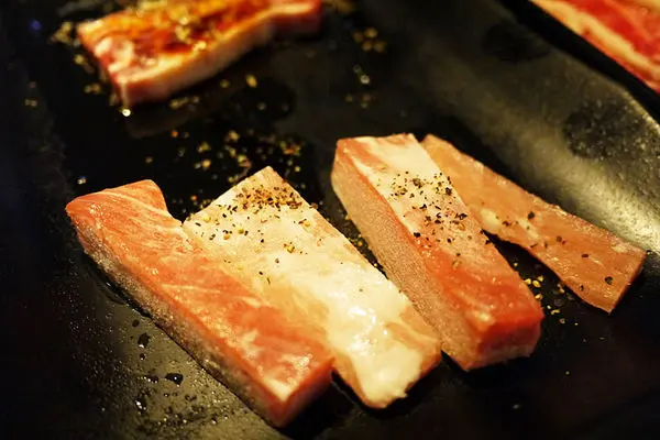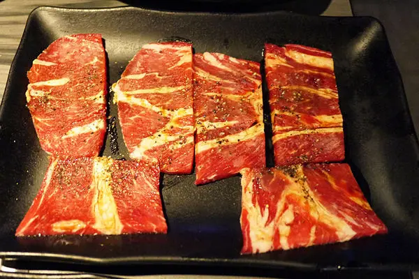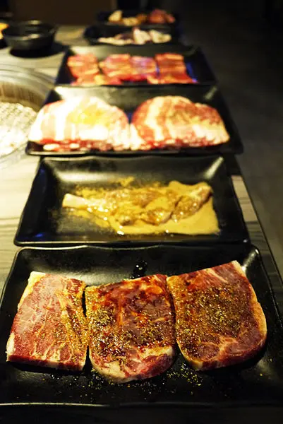 胡麻蒜味牛五花和蒙特羅風味牛培根,二者的油花都分佈很均勻,肉質也很嫩,烤出來的香味很棒。